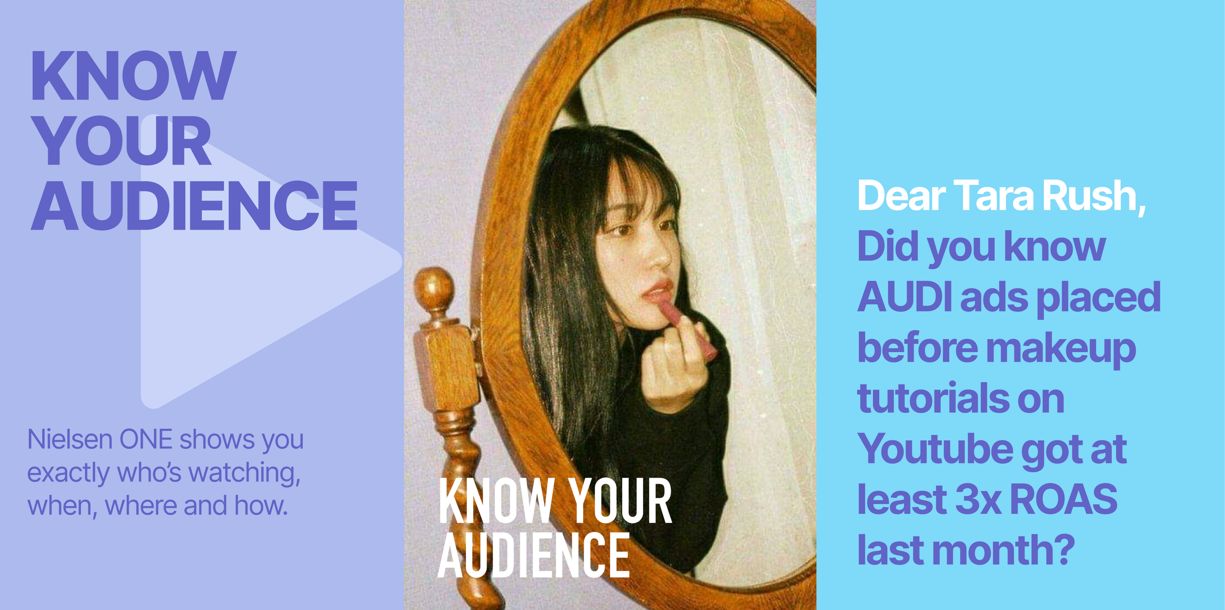 I primarily worked on one direction. With the tagline I created: Know your audience, we found a bold and humorous way to present the benefits of Nielsen’s new service.