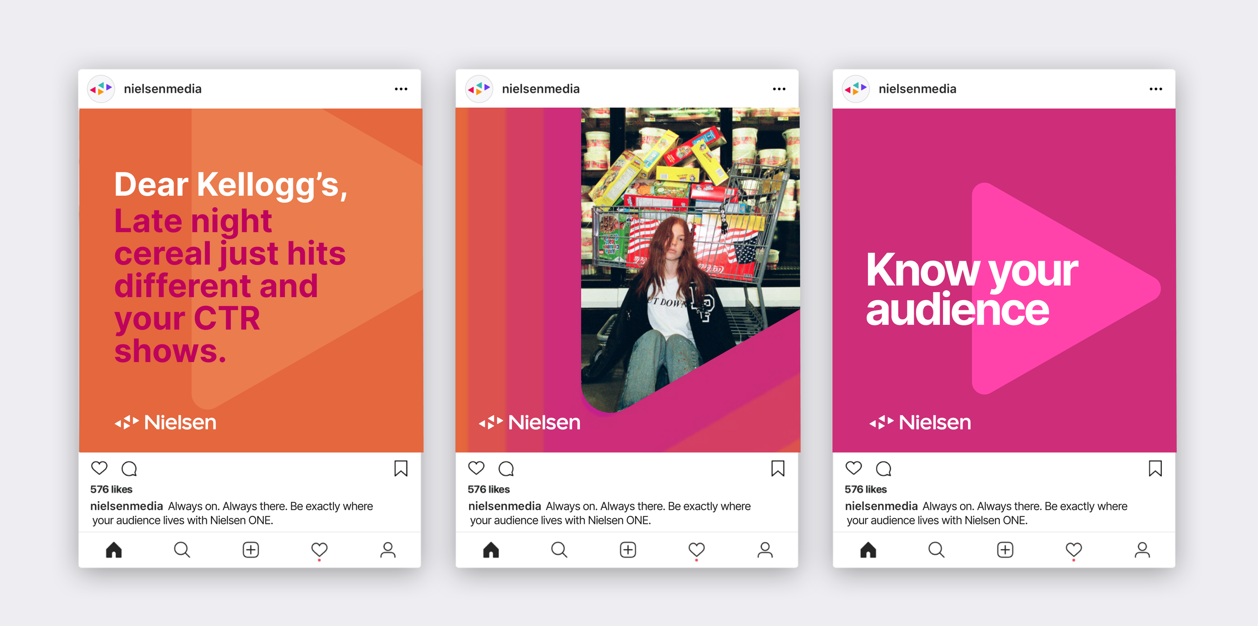 It was all about ONE-to-one communication — speaking directly to and (almost) provoking Nielsen’s customers: the advertisers, media partners and CMOs. How well do they really know their audience? Through surprising insights and unexpected stats, we showcased how Nielsen ONE can help them put their ad dollars where their audience is.