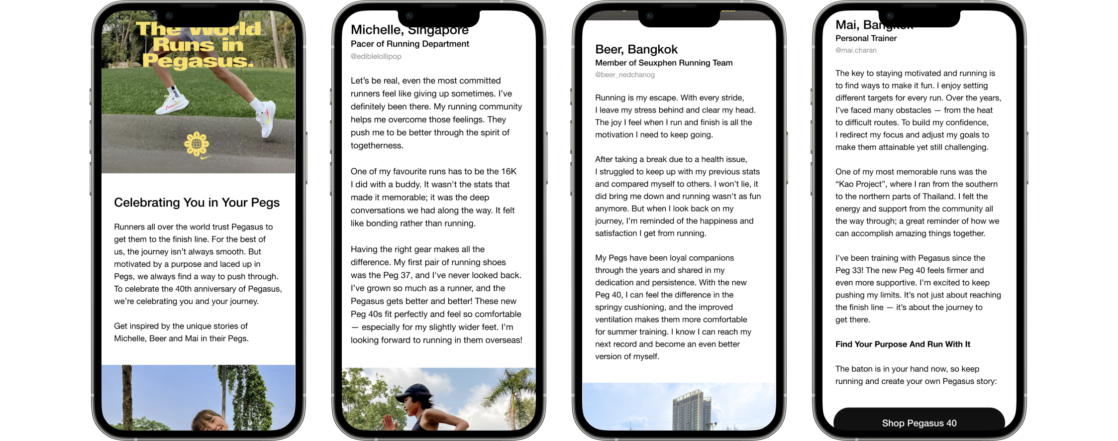 Crafting a narrative for content on the Nike App in Singapore, Malaysia, Thailand & India.